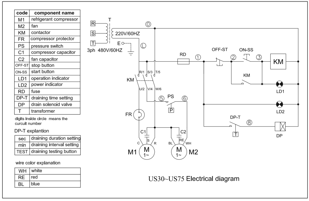For US30 ~ US75 (3 PhZ 480V/60 HZ)